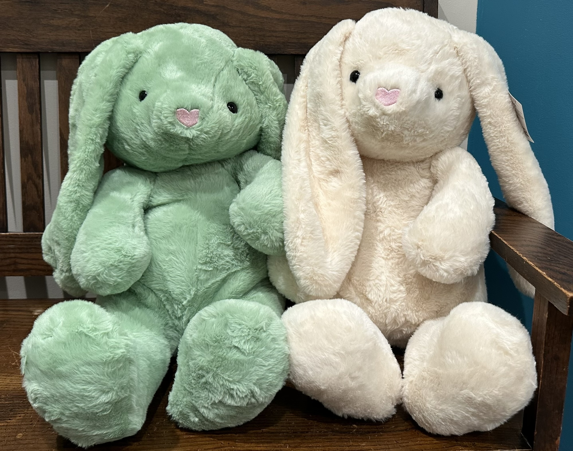 These cute giant (22 inch) bunnies are soft and snuggly. With their heart noses and fun color, they would make a great gift for your Valentine, St. Patrick’s Day celebration, or Easter basket! Get yours now before they run out.